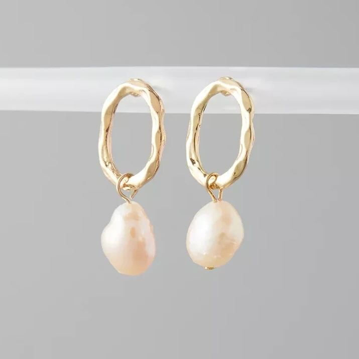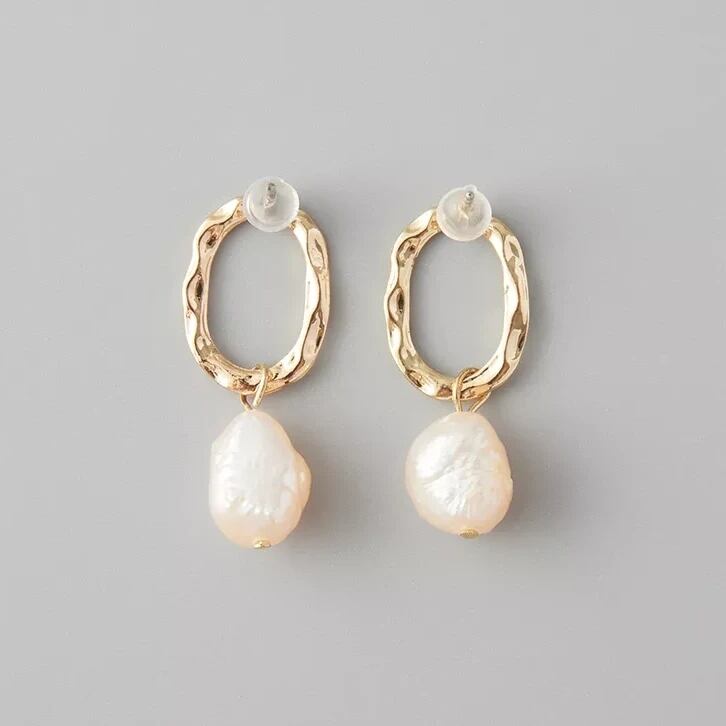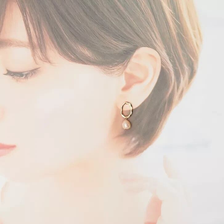 歩くたびにゆらゆら揺れるパールと、ゴールドのモチーフが耳元を華やかに彩ってくれますよ♪