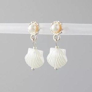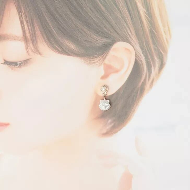 ■爽やかなデザイン♪貝ビーズのスタッドピアス