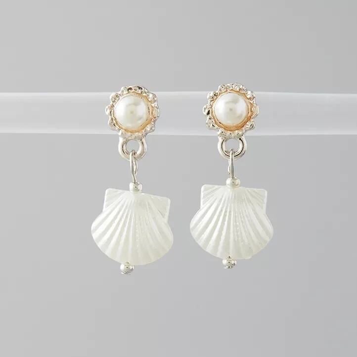 歩くたびに揺れる白い貝殻は、海岸で感じるような爽やかな風を自然に感じることができそうなデザインです。