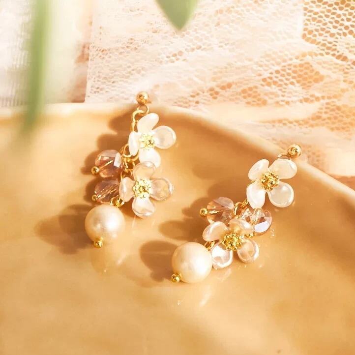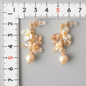 ゆらゆら花飾りのピアス (ホワイト&シャンパンゴールド)