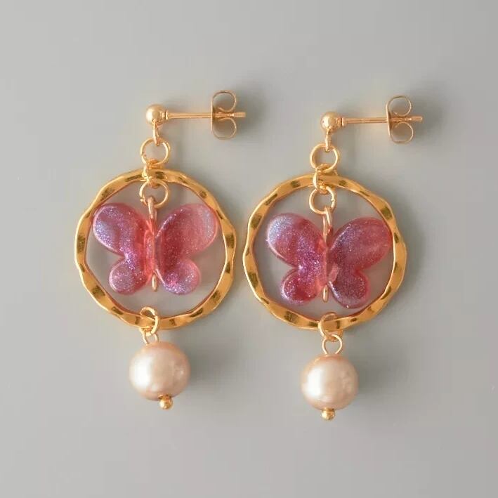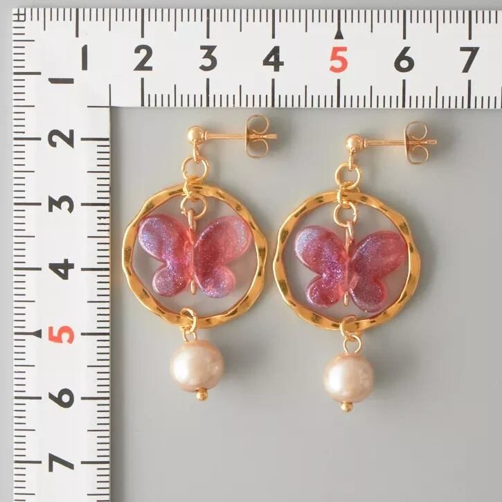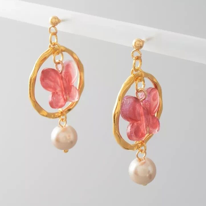 耳元で蝶が優雅に舞うようなデザインが魅力のピアス。