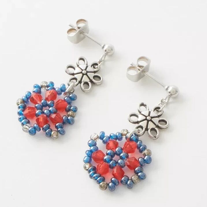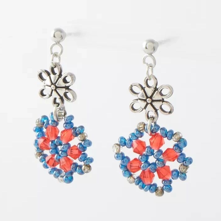 ビーズをテグスで編み上げ、花火モチーフに仕立てました。