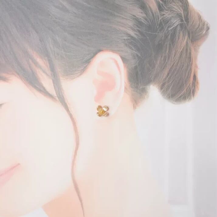 フラワーモチーフが立体感のあるスタッドピアス。 グレーベージュの落ち着いたカラーで、ピュアなホワイトよりも肌馴染みよく身につけていただけます。