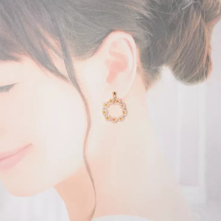 クリアビーズが光にあたるとキラキラときらめく、かわいいデザイン。