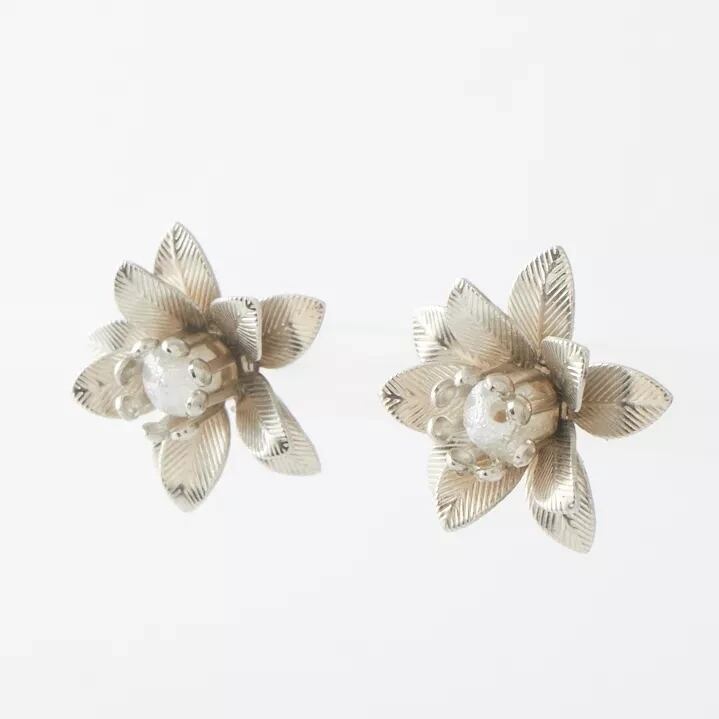 真鍮フラワーのピアス (シルバー)