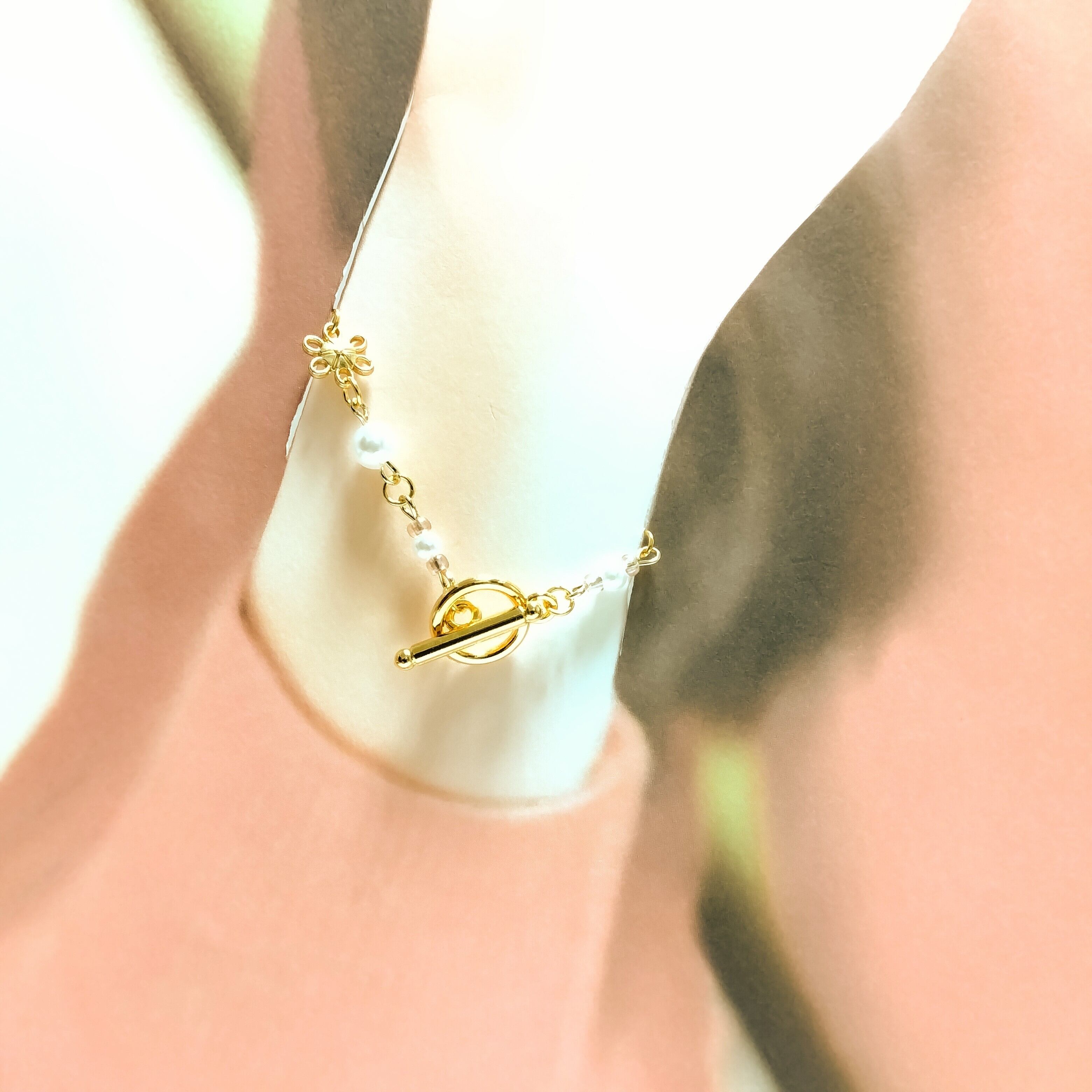お出掛けが楽しくなるパールモチーフのブレスレットです。