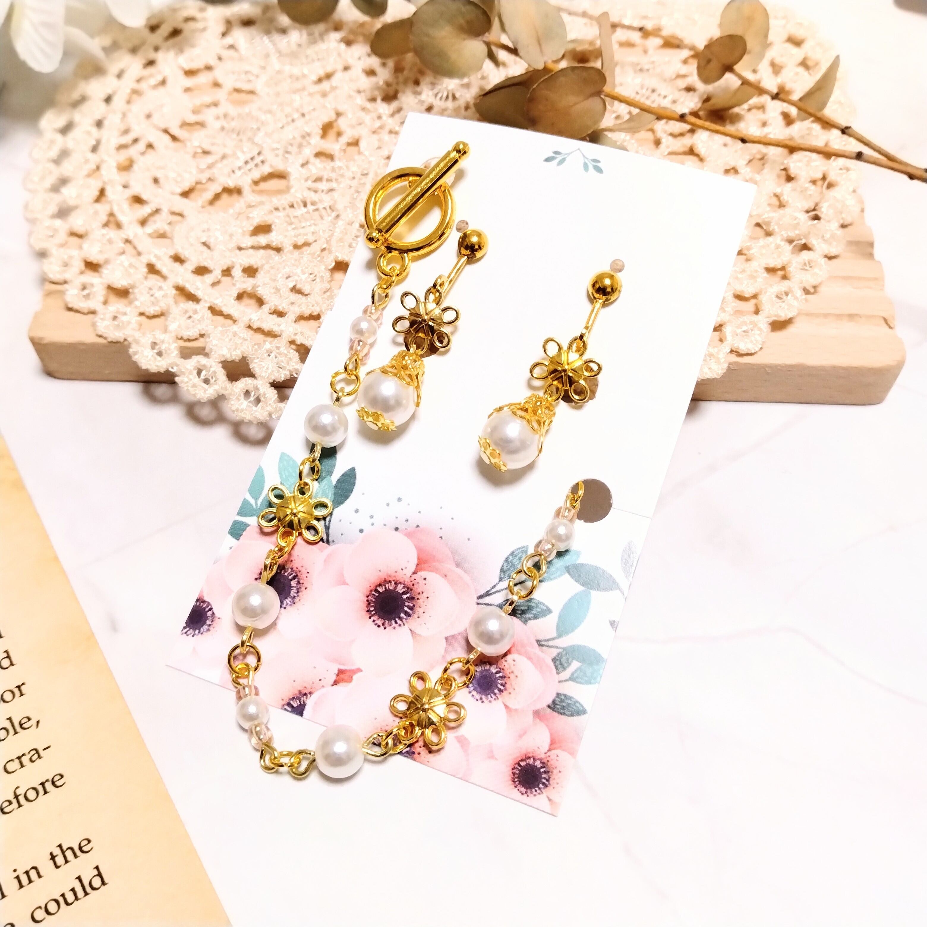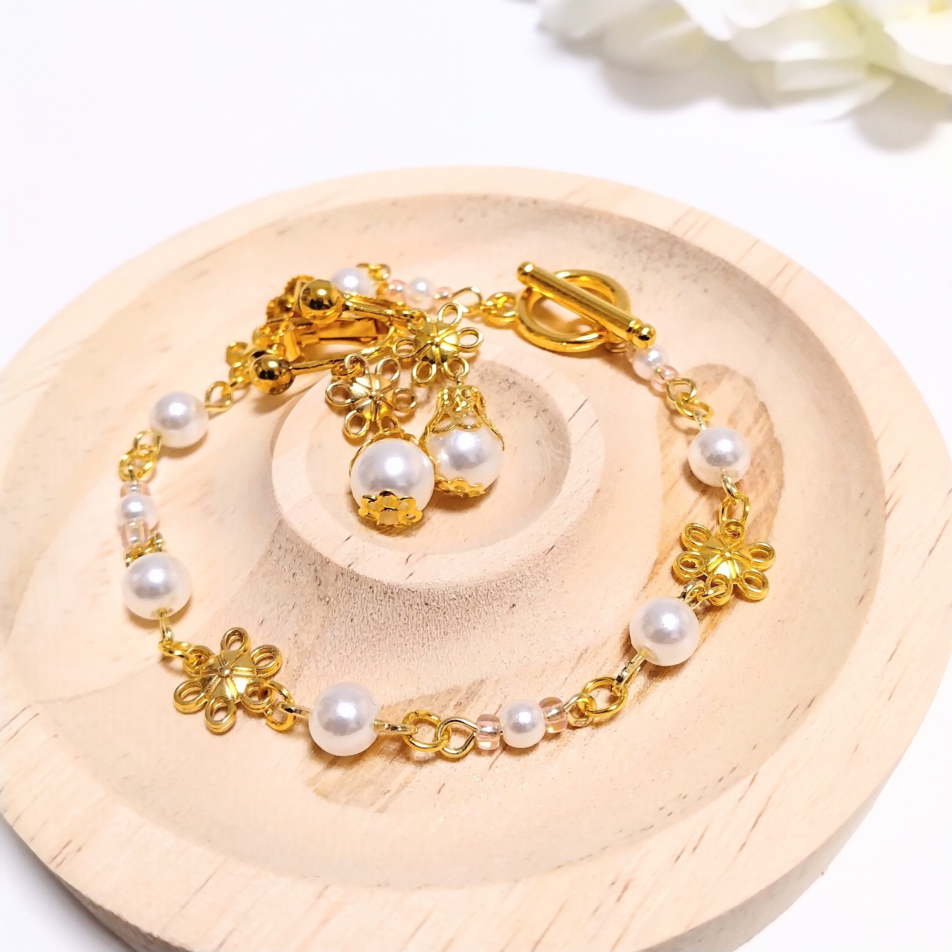 軽いつけ心地のプラパールビーズのイヤリングとブレスレット