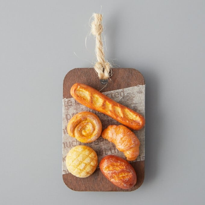 ブレックファストなパンセレクション:樹脂粘土のミニチュアフェイクフードのアートマグネット